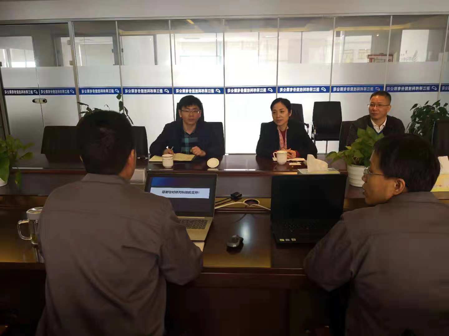總經(jīng)理唐駿鋒向局長一行人介紹了祥邦科技近幾年發(fā)展歷程,與現(xiàn)階段工作重點。隨后,科技局局長給出重要指導(dǎo)意見。