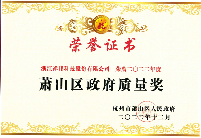 蕭山區(qū)政府質(zhì)量獎(jiǎng)